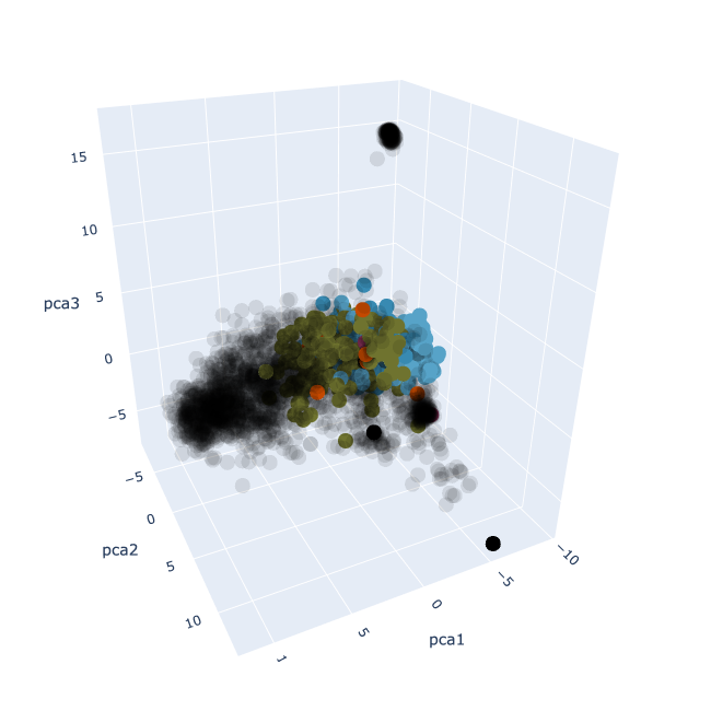 As a consequence of how PCA works (see [[Notes - Machine Learning MT23, Principal component analysis]]U if you’re interested), adding in my private notes will change the locations of all the existing points, so it won’t look the same as it does in the visualisation above.