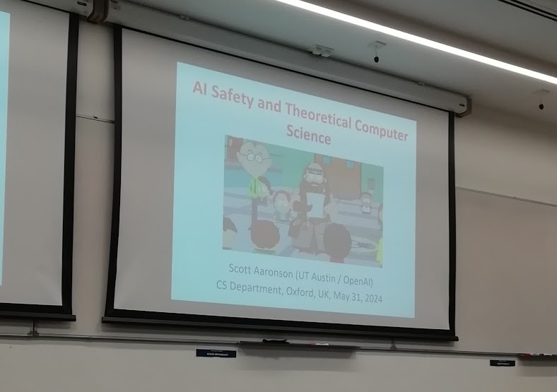 This was great – enjoyed reading it just as much as I did [[Gödel, Escher, Bach]]N. I wanted to read it after seeing a really inspiring seminar given by Scott Aaronson himself called “AI Safety and Theoretical Computer Science”: